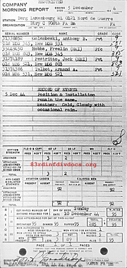 Morning report C/908FA for December 5, 1944