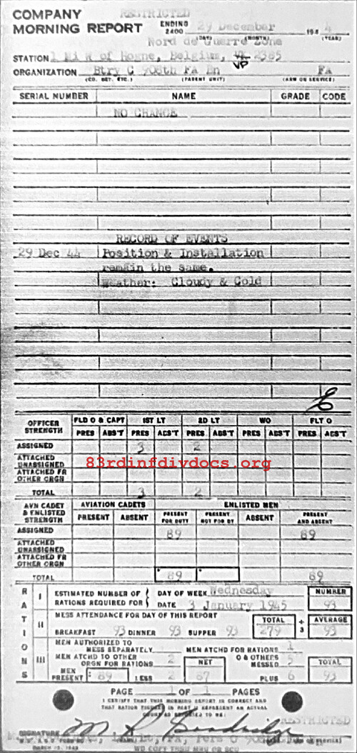 Morning report C/908FA for December 29, 1944