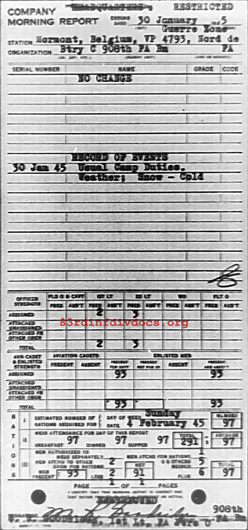 Morning report C/908FA for January 30, 1945