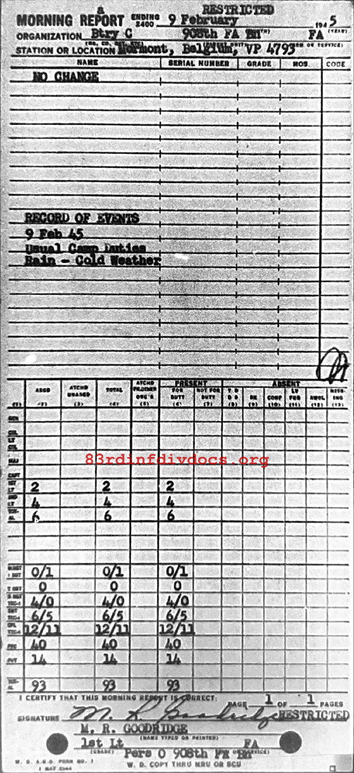 Morning report C/908FA for February 9, 1945