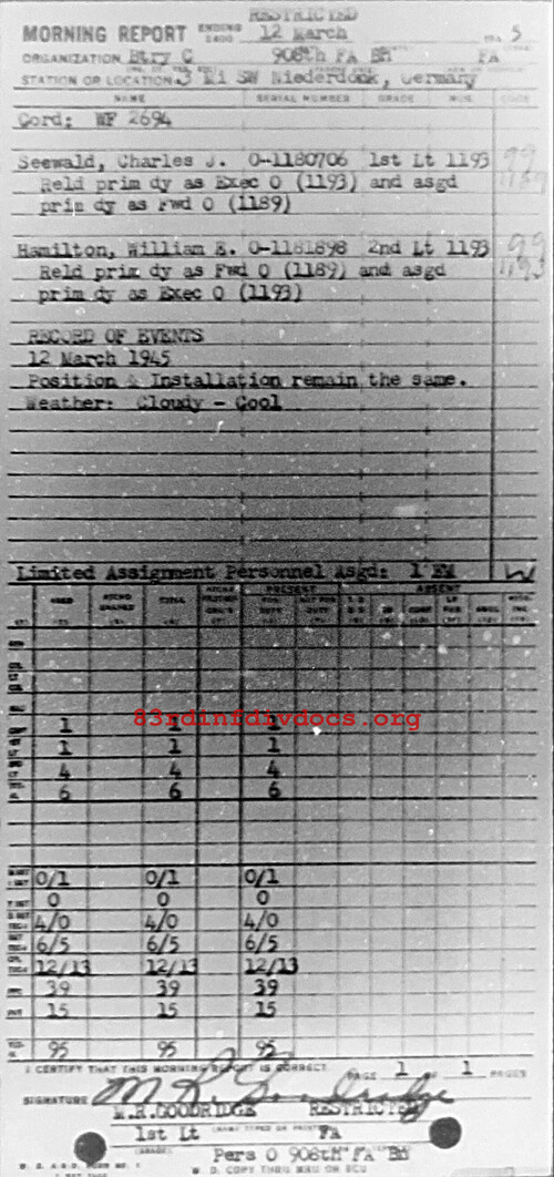 Morning report C/908FA for March 12, 1945