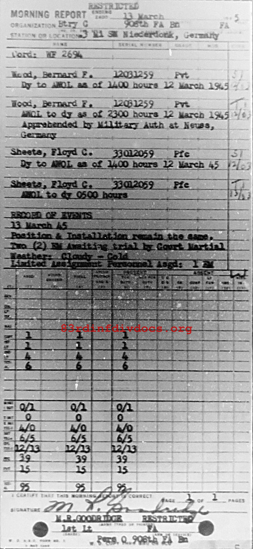 Morning report C/908FA for March 13, 1945