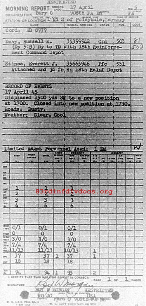 Morning report C/908FA for April 17, 1945