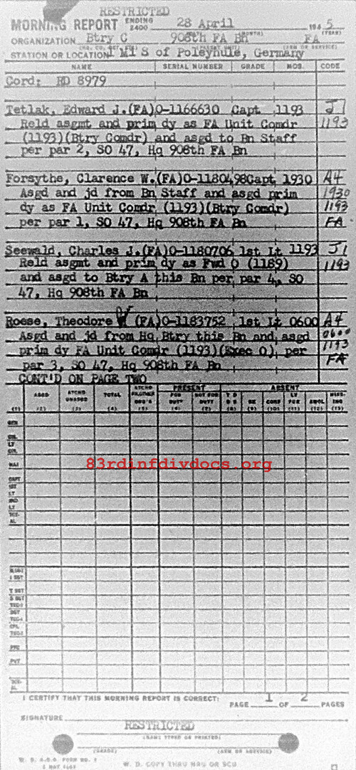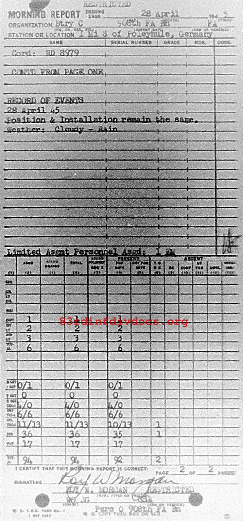Morning report C/908FA for April 28, 1945