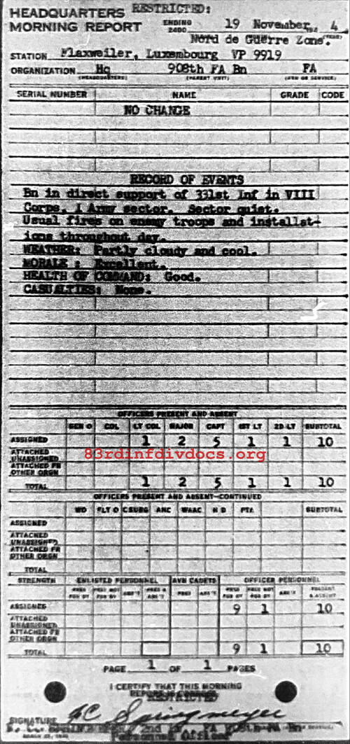 Morning report HQ/908FA for November 19, 1944