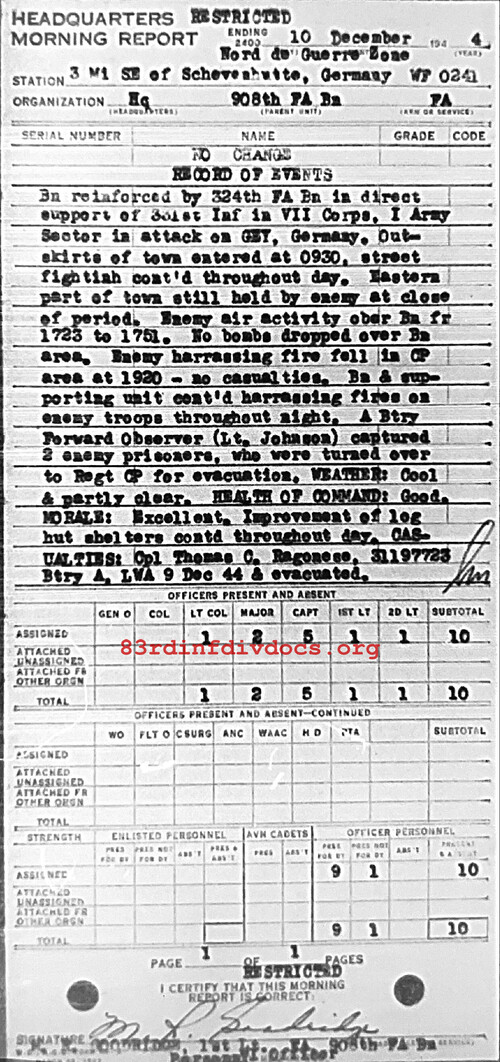 Morning report HQ/908FA for December 10, 1944