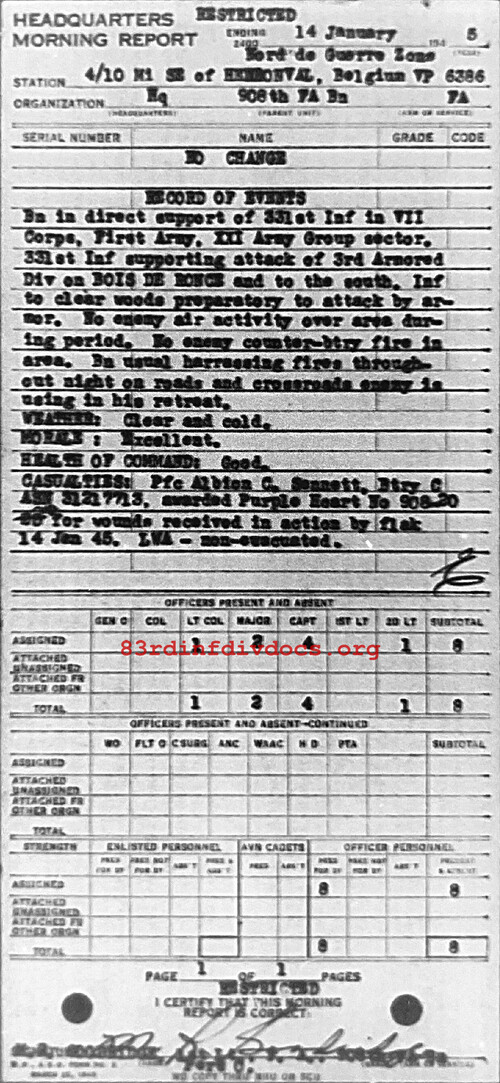 Morning report HQ/908FA for January 14, 1945