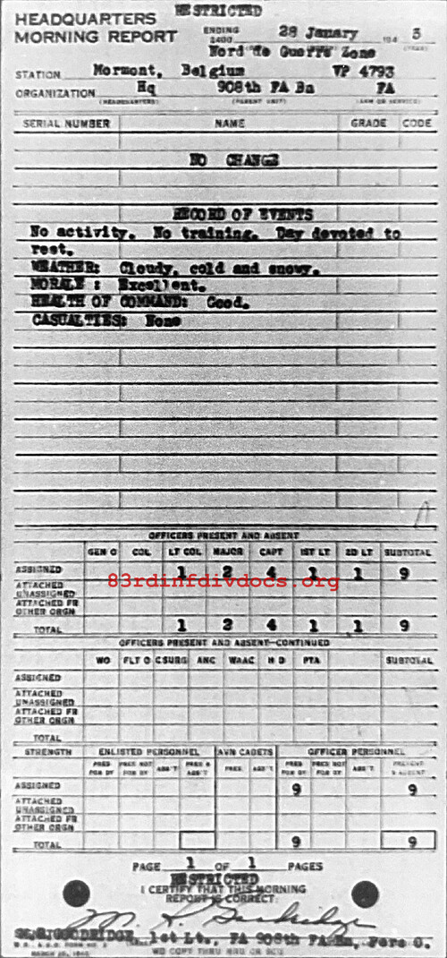 Morning report HQ/908FA for January 28, 1945