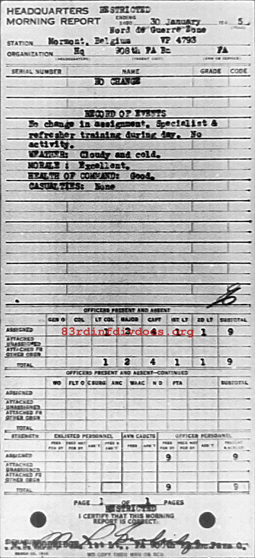 Morning report HQ/908FA for January 30, 1945