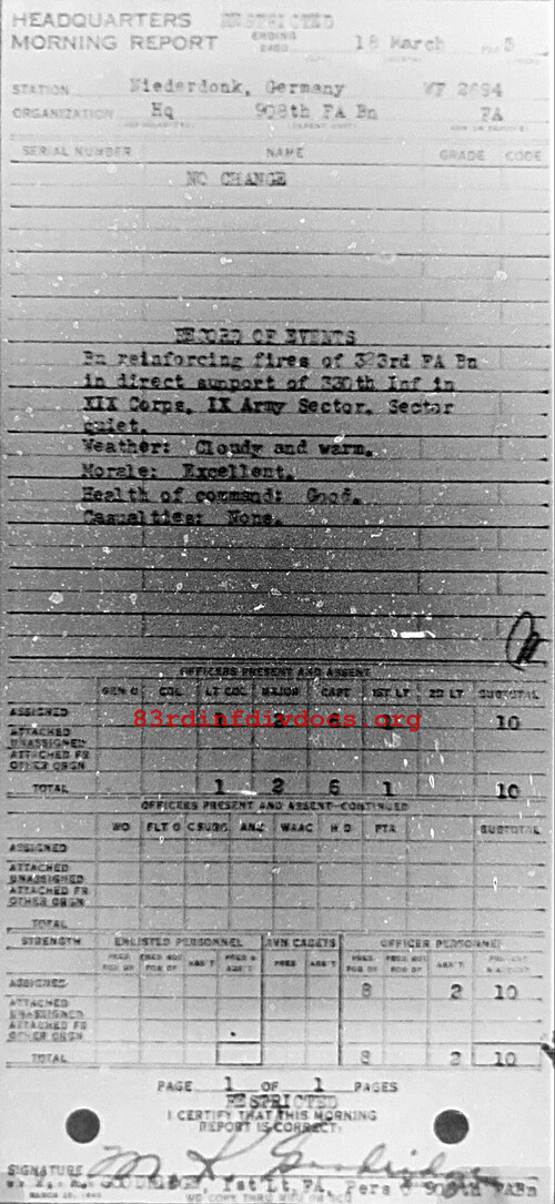 Morning report HQ/908FA for March 18, 1945