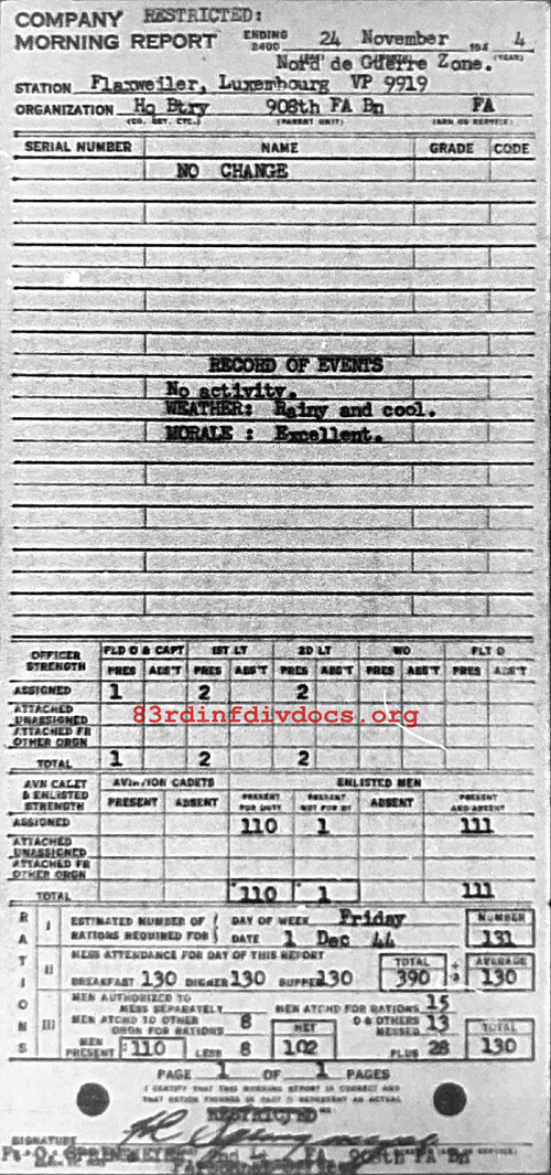 Morning report HQBTRY/908FA for November 24, 1944