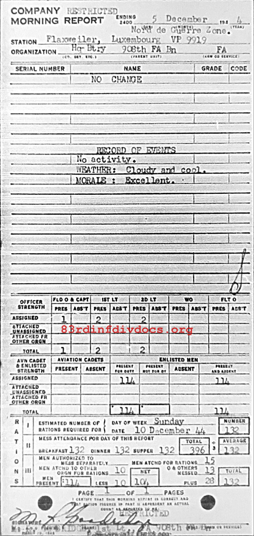 No activity. Weather: Cloudy and cold. Morale: Excellent.