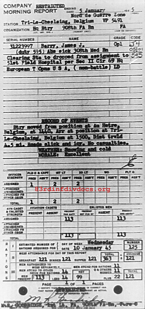 Morning report HQBTRY/908FA for January 5, 1945