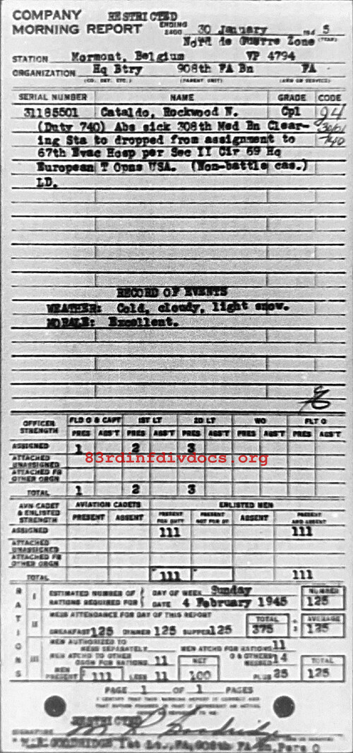 Weather: Cold, cloudy, light snow. Morale: Excellent.