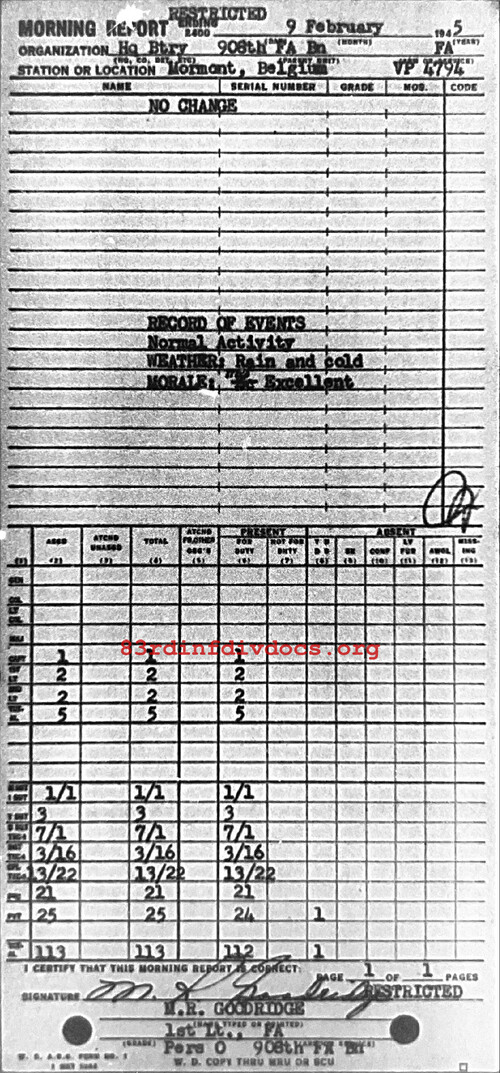 Normal activity. Weather: Rain and cold. Morale: Excellent.