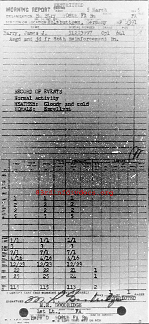 Normal activity. Weather: Cloudy and cold. Morale: Excellent.