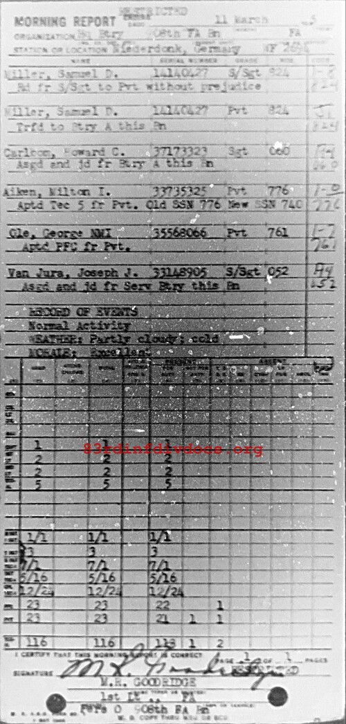 Normal activity. Weather: Partly cloudy, cold. Morale: Excellent.
