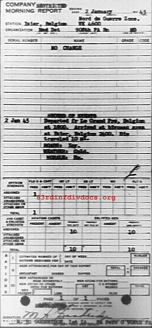Morning report MEDDET/908FA for January 2, 1945