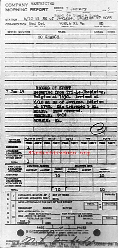 Morning report MEDDET/908FA for January 7, 1945
