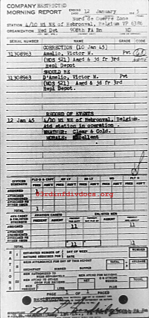 Morning report MEDDET/908FA for January 12, 1945