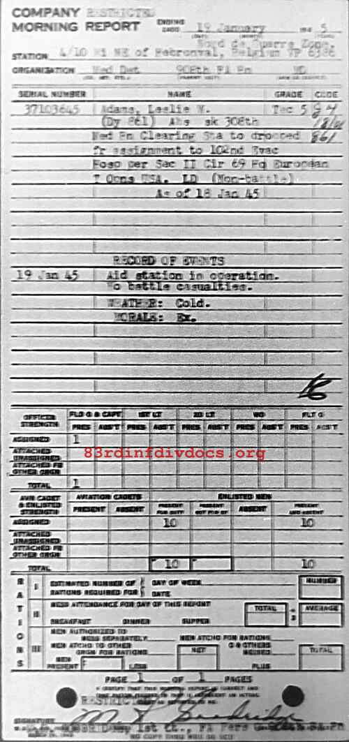 Morning report MEDDET/908FA for January 19, 1945