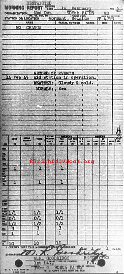 Morning report MEDDET/908FA for February 14, 1945
