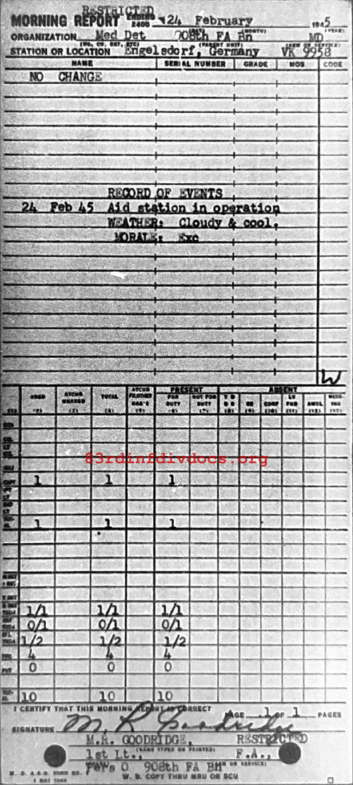 Aid station in operation. Weather: Cloudy & cool. Morale: Excellent.
