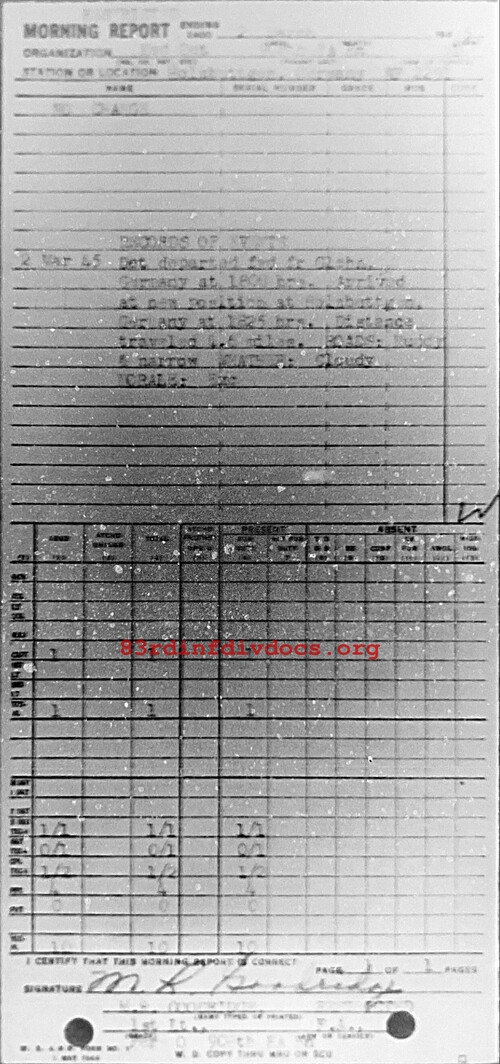 Morning report MEDDET/908FA for March 2, 1945