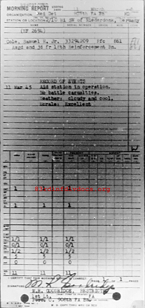 Morning report MEDDET/908FA for March 11, 1945