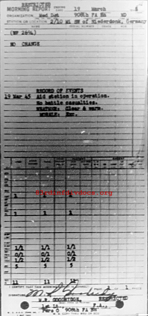 Morning report MEDDET/908FA for March 19, 1945