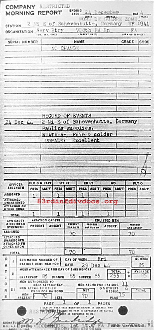 Hauling supplies. Weather: Fair & colder. Morale: Excellent.