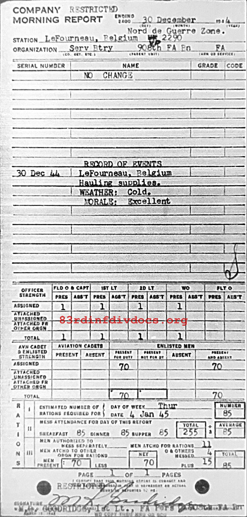 Hauling supplies. Weather: Cold. Morale: Excellent.