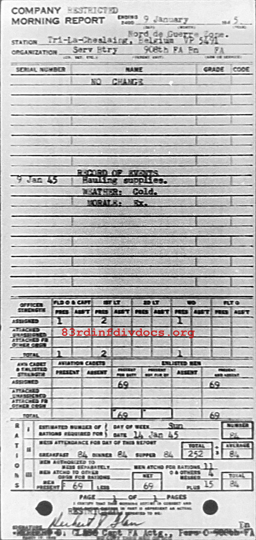 Hauling supplies. Weather: Cold. Morale: Excellent.