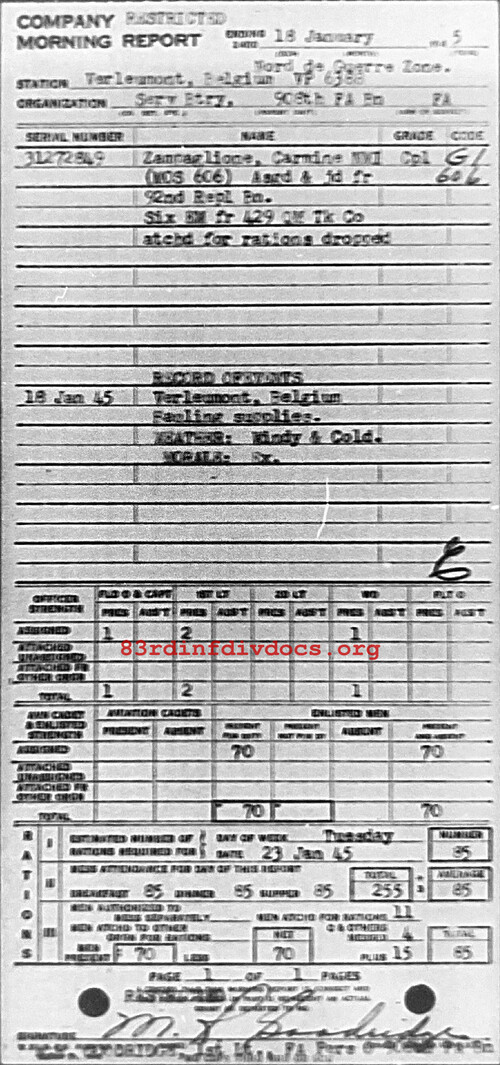 Morning report SERBTRY/908FA for January 18, 1945