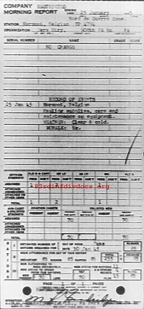 Hauling supplies, care and maintenance on equipment. Weather: Clear & cold. Morale: Excellent.