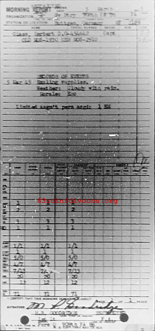 Hauling supplies. Weather: Cloudy with rain. Morale: Excellent.