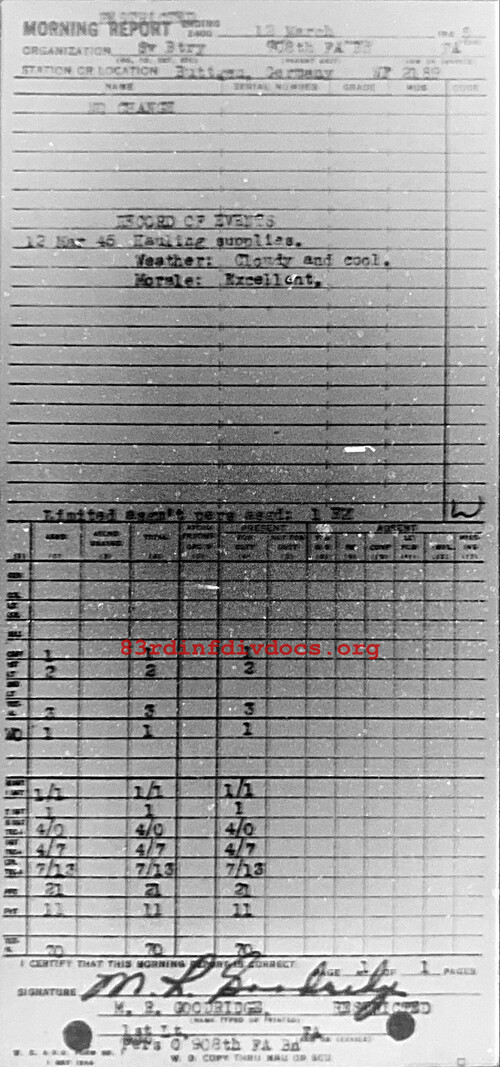 Hauling supplies. Weather: Cloudy and cool. Morale: Excellent.