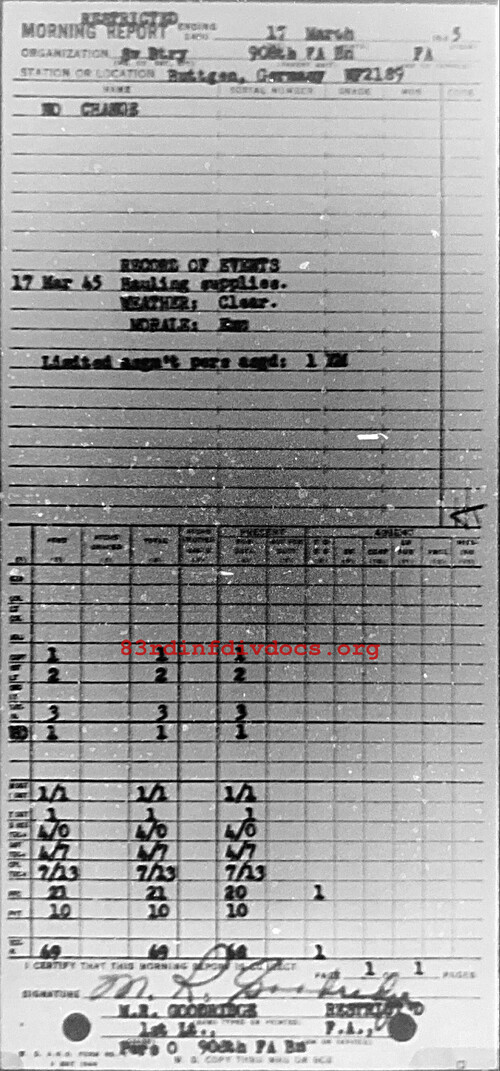 Morning report SERBTRY/908FA for March 17, 1945