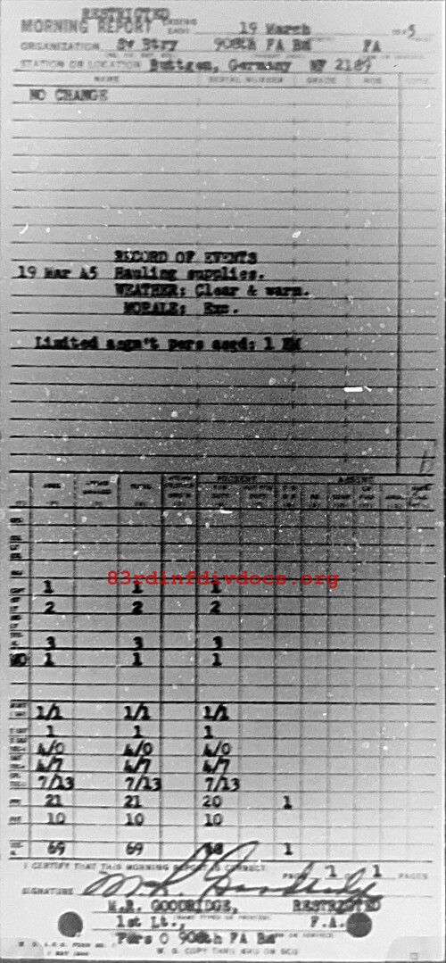 Morning report SERBTRY/908FA for March 19, 1945