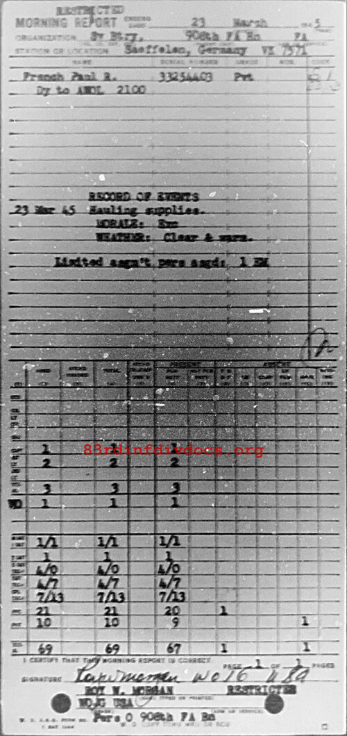 Hauling supplies. Weather: Clear and warm. Morale: Excellent.