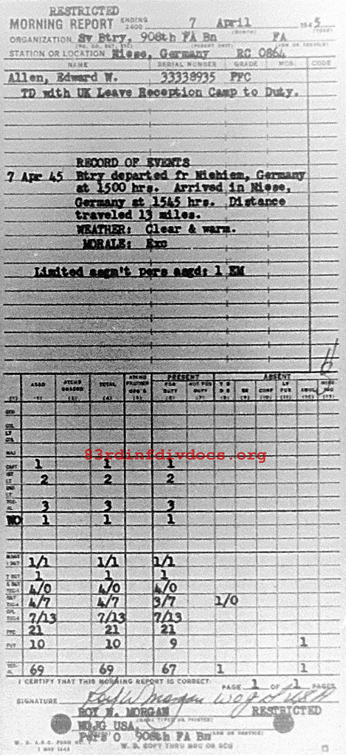 Morning report SERBTRY/908FA for April 7, 1945